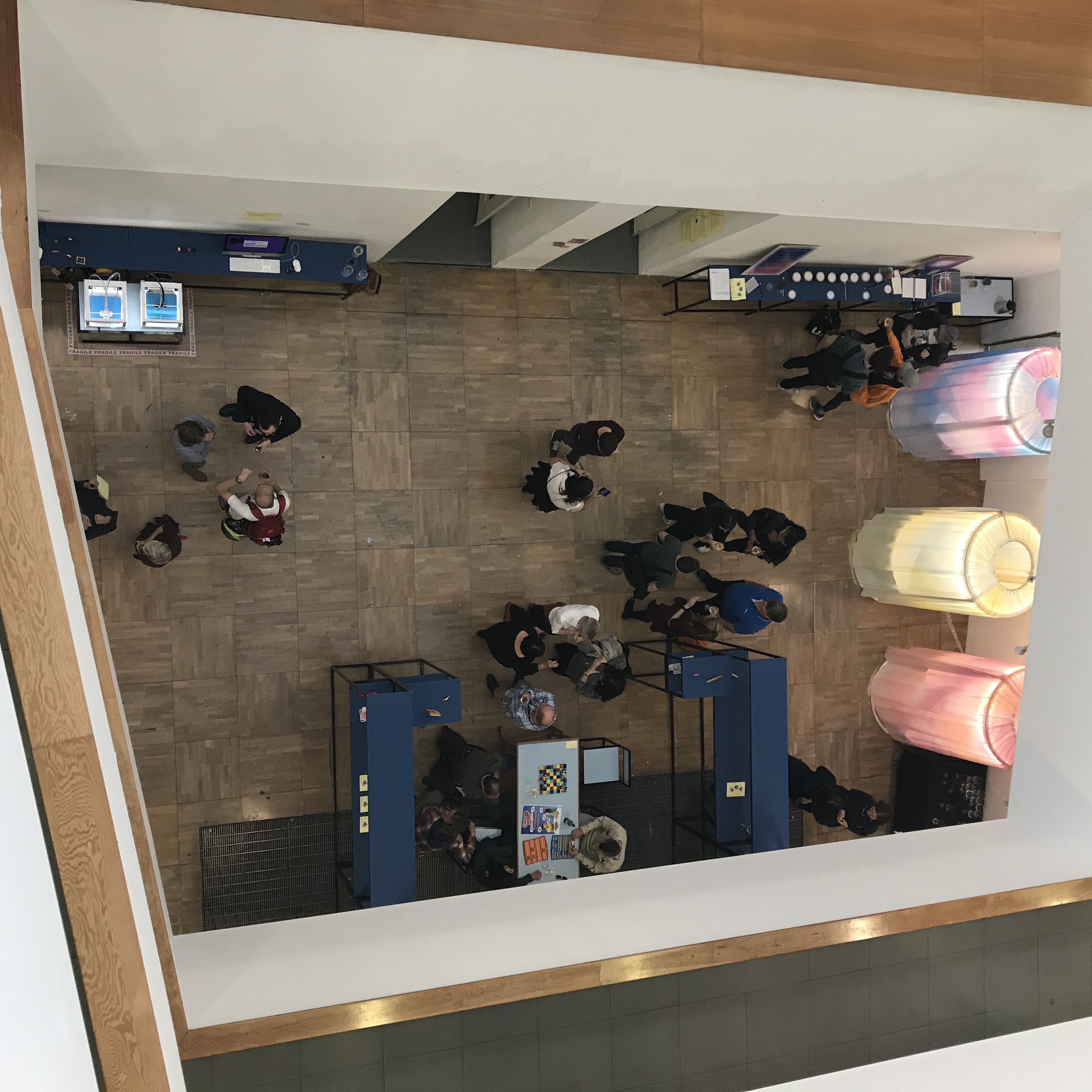 Interplay Under Construction is an interactive exhibition where visitors are invited to explore and experience how the University of the future might collaborate, innovate, theorise and provide new learning and teaching spaces. Artworks and projects by alumni, staff and students are presented to show innovation in teaching and learning practices. The exhibits pose questions to visitors and playfully invite them to answer. By engaging in an interactive multi-sensory experience the exhibits intents to construct and play with new ideas of collaboration, teaching and learning. Gwen was not only the guest curator for the exhibition, but also got commissioned to create two new artworks for the exhibition, which resulted in a scent and board game. Who nose…? has been specifically blended for the exhibition. The contemporary scnet questions how we gather information with our nose and how this important (and often underused) tool could be integrated in future education. This quite literally gives a new meaning to having your nose in a book. Game over presents a ambidextrous chess game. The visitor’s familial response and normal interaction with the game is harshly interrupted when they engage to play. Relational aesthetics is a key factor to this work. The visitors are invited to engage with the unknown and explore new ways of playing and collaborating. To unlearn what they know and learn a new game.